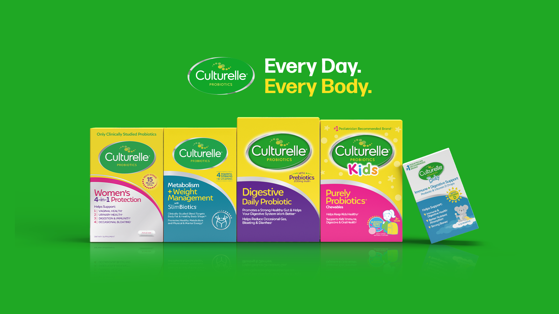 Culturelle uses Lactobacillus rhamnosus GG (LGG), the single most clinically studied probiotic strain in the world. It is the gold standard for basic digestive support and antibiotic-associated diarrhea.